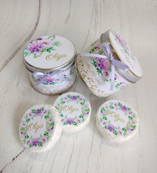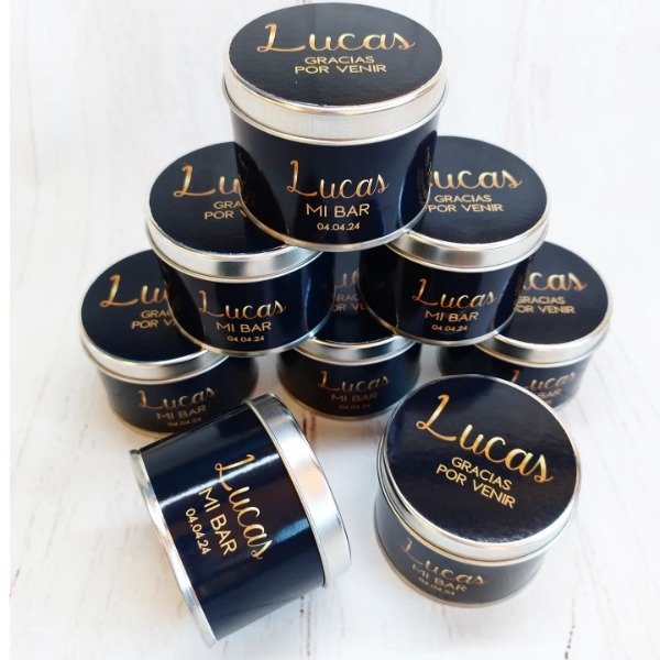 Un envase metálico versátil y de alta calidad, totalmente personalizado para guardar pequeños recuerdos, golosinas o jabones.