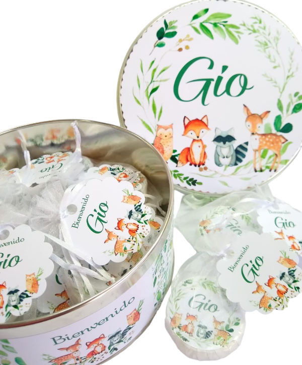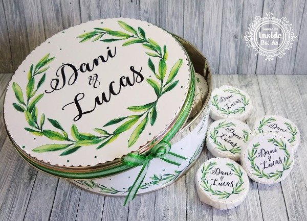 Elegancia y versatilidad para tu evento. Nuestra lata central es el complemento perfecto para tu mesa de souvenirs, presentada con una delicada cinta de organza al tono.